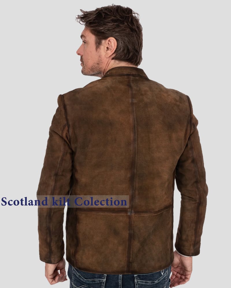 This finely crafted Trachten Jacket blends traditional Bavarian heritage with modern craftsmanship. Made from premium suede leather in rich brown tones, it delivers a soft, luxurious texture while ensuring long-lasting durability. The classic Bundhosen-inspired cut offers an elegant simplicity, while the natural shade variations in the suede give it a unique, vintage character. Its deep brown color makes it versatile—perfect for both everyday wear and festive occasions.